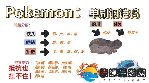 这时候大家会发现,我们还遗漏了一个属性,就是太晶水的钢铠鸦,无论因为抗火所以骨纹巨声鳄无法通过,并且吃吼霸也同样因为无有效技能克制太晶水而无法通关,因此可以培养一只太晶电的骨纹巨声鳄。
