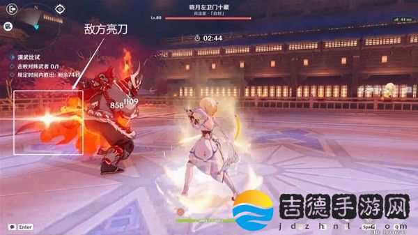 敌方第三招向前突进:上图,敌人蓄力前戳,在敌人有前戳趋势时,我们立刻按E技能(元素战技格挡),即可完美格挡。