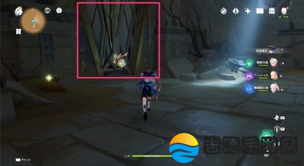 寻找阳光透过遗迹的缝隙照射进来的位置,在位置旁边可以看到一扇锁着的门。