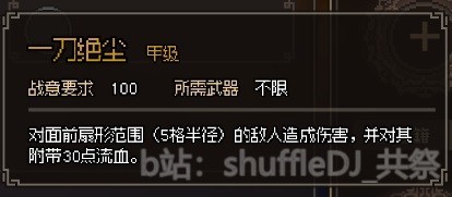 回去找一刀 学到绝招一刀绝尘 伤害一般般 完全达不到乙级武功水准。