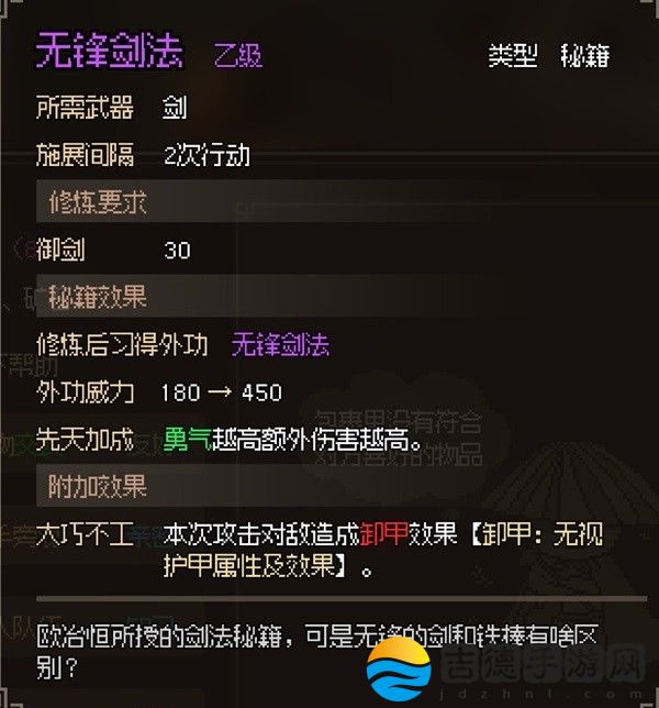 剑痴:好感到80 悟性12点 请教获得【无名剑法】