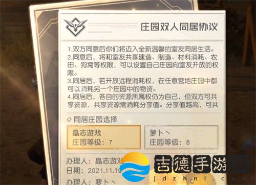 大家在游戏中,满足以上条件后,就可以邀请好友同居了,然后大家就会开始“默契考验”,当大家和好友答对5到以上的题目时,就可以签订同居契约,正式同居了。