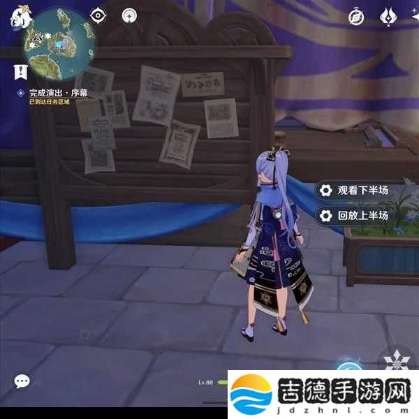 对话结束后点击告示牌这里,开始观看上半场!