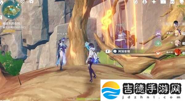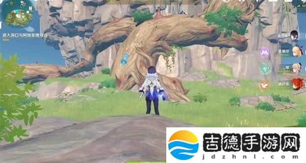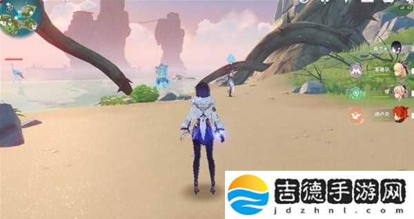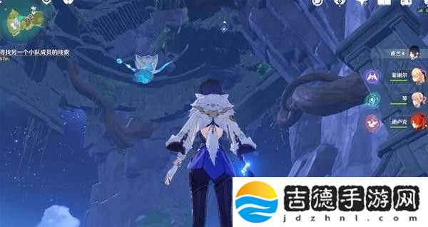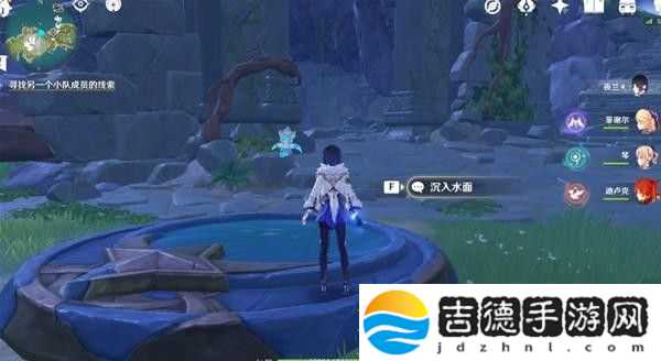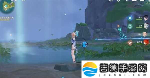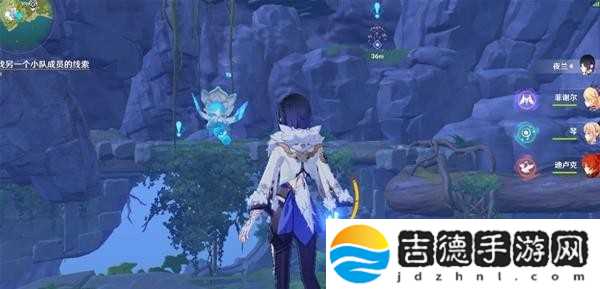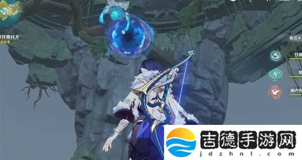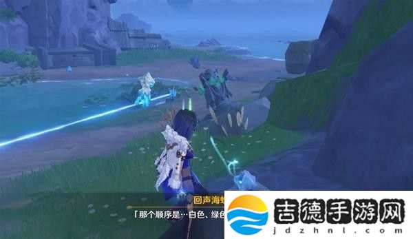 这里回声海螺提示了我们四个属性碑的顺序,白绿红蓝,即冰风火水,然后就能打开一个通道,再击打一次风属性碑,即可产生风场飞上去。
