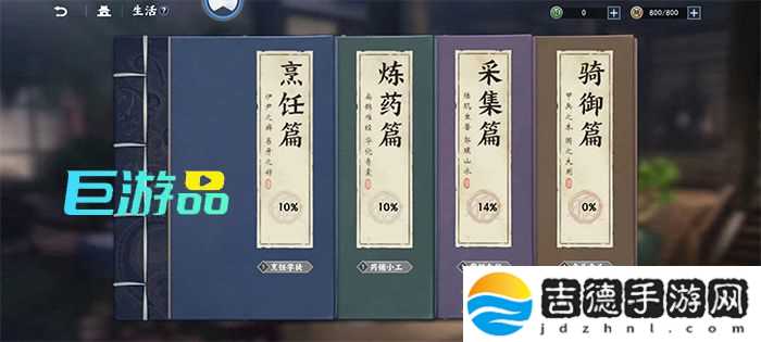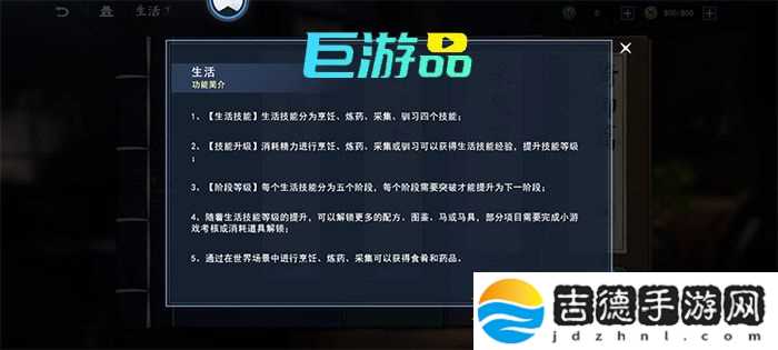 生活技能分为烹饪、炼药、采集、驯习四个技能,每个技能玩法大同小异。