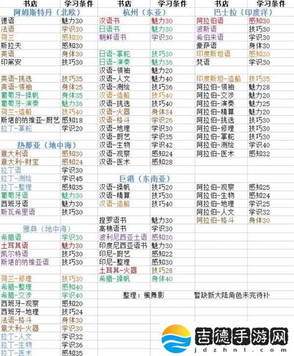 《风帆纪元》中玩家们可以学习的书籍有很多,想要知道各个书籍学习条件的玩家请看下面“楓舞影”带来的《风帆纪元》各书店书籍一览,希望能够帮助大家。