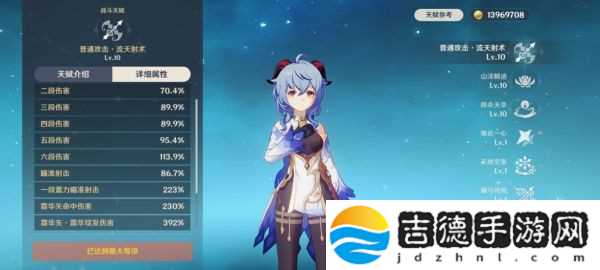 10级普攻的两段霜花矢总倍率高达622%,使得甘雨的主要输出手段为蓄力普攻