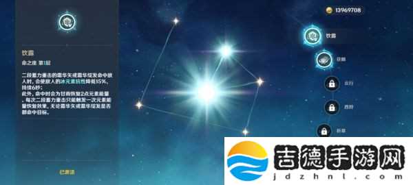 1、一命,重击霜华矢减少敌人15%冰元素抗性,命中时为甘雨回复少量能量