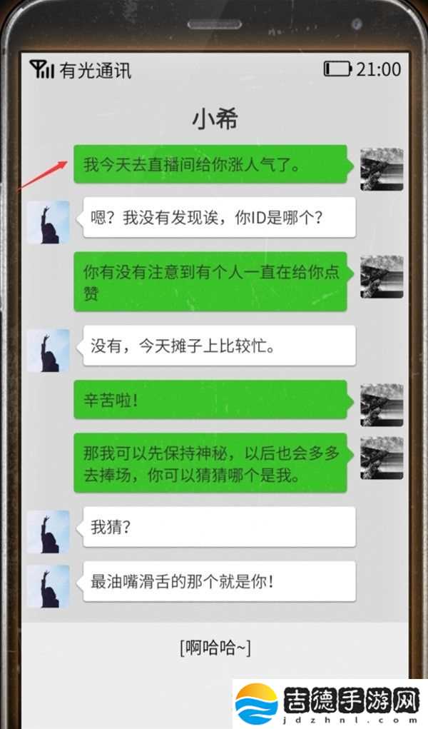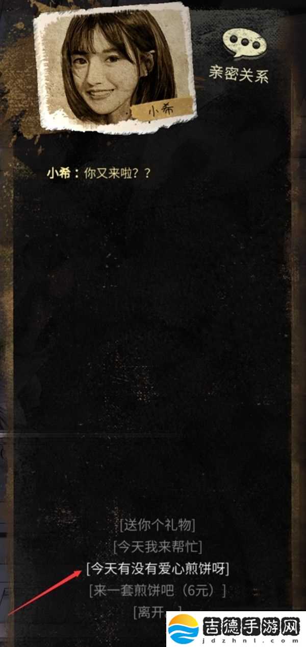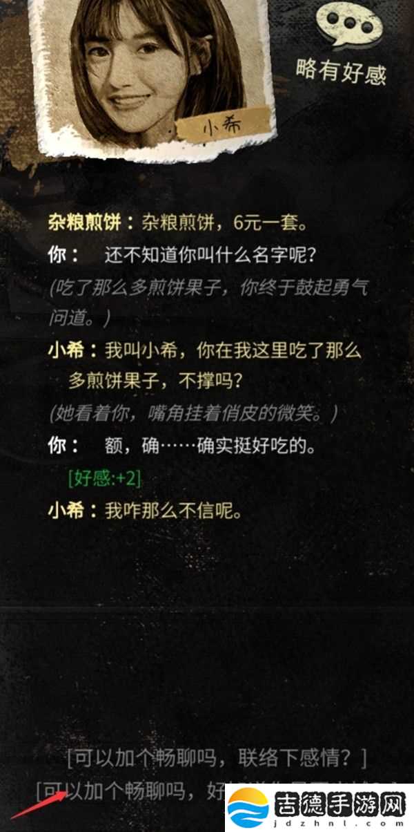 对话后选择:加个联系方式知道是否出摊!不要选择看她长得好看,亲密度会减少20!