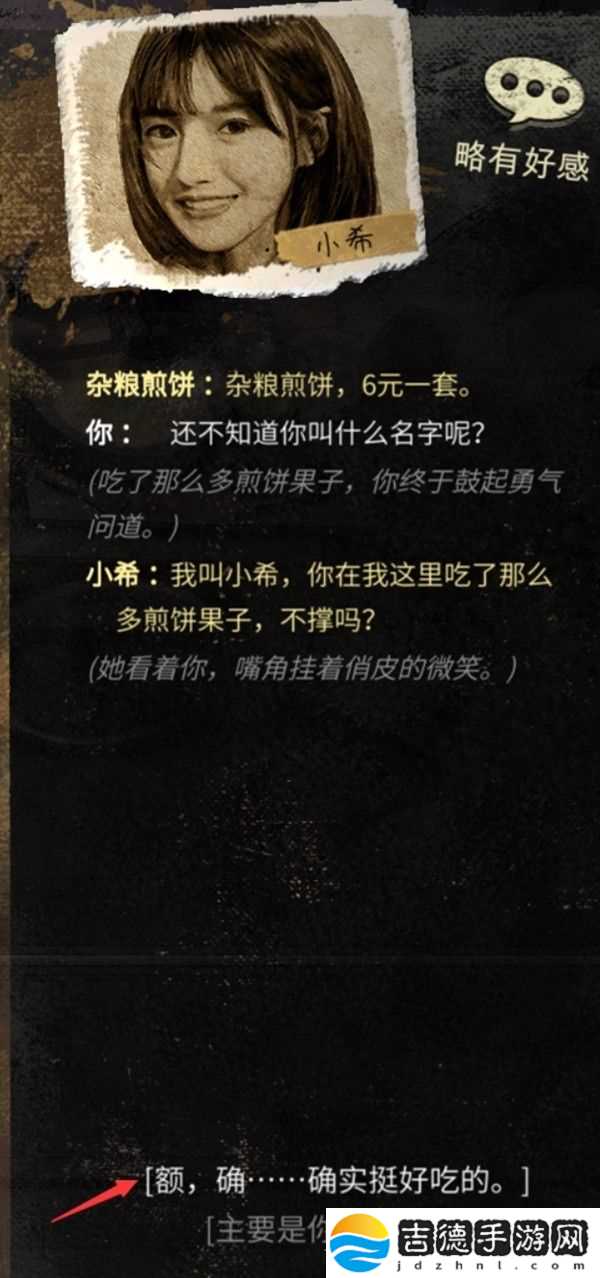 对话后选择:确实挺好吃的,亲密度额外增加2点!不要选择人长的好看,亲密度会减5点!