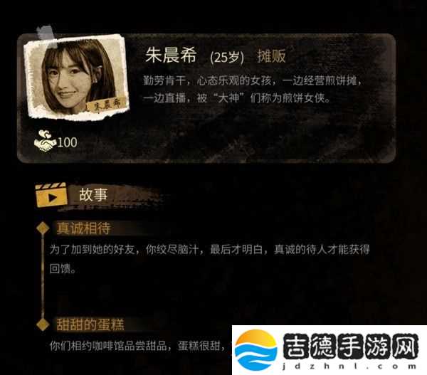 《大多数》中朱晨希是游戏中的煎饼摊主,玩家们可以通过互动来追求她,想要知道如何对话的玩家请看下面“工地怨种大猛子”带来的《大多数》朱晨希恋爱攻略,希望能够帮助大家。