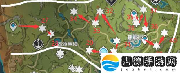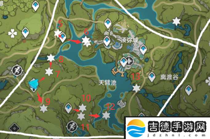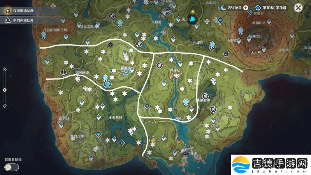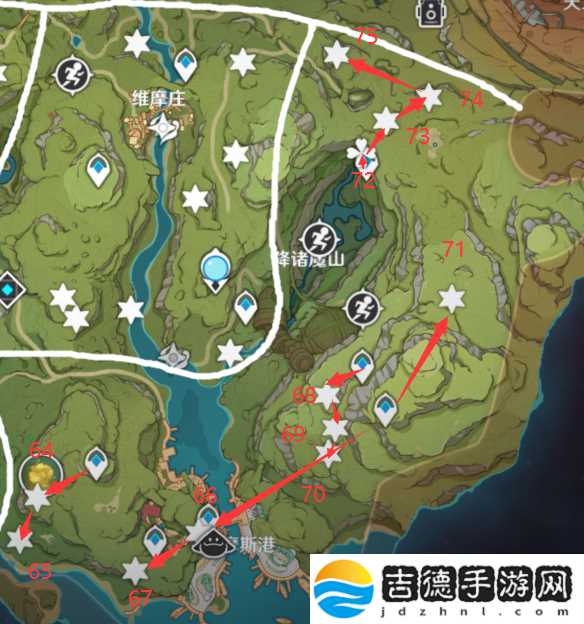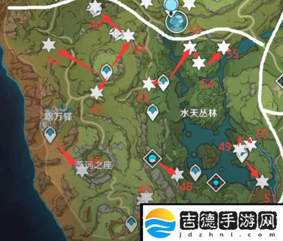 注意:由于图片限制,除地下的兰那罗和部分需要解密的都没有说明跟图片,没有说明的基本都在地表容易找到,按标点路线直接走就可以(有高地落差的地方建议看清楚兰那罗位置在降下去)