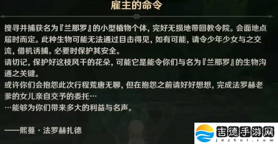 可以看到 想要成为『大贤者』的熙蔓(作为雇主)要求法罗赫之子捕获兰那罗,甚至还要利用兰那罗之前给她的花朵...