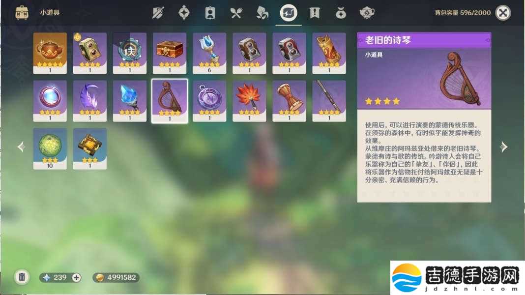 打开背包,装备「老旧的诗琴」
