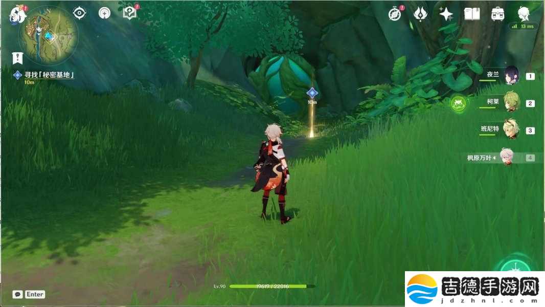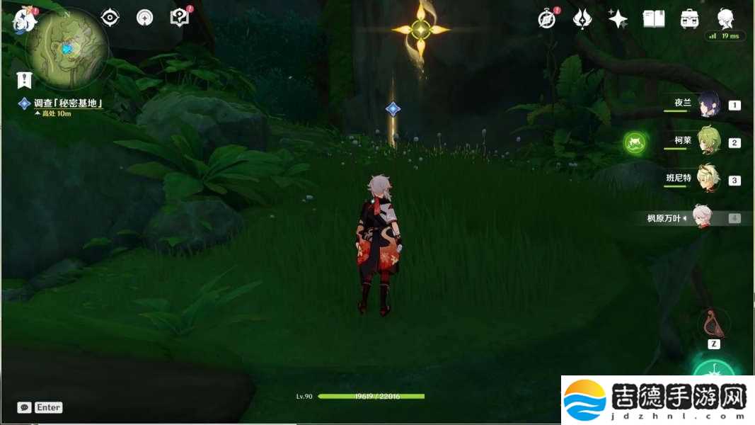 按任务指引走,往地图的东北方向飞,利用四叶印,飞到「秘密基地」调查
