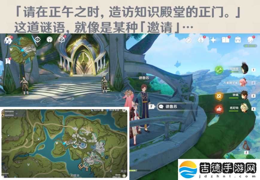 谜题5:来到净善宫门前,调整游戏内时间到中午12点,与npc德鲁苏对话即可