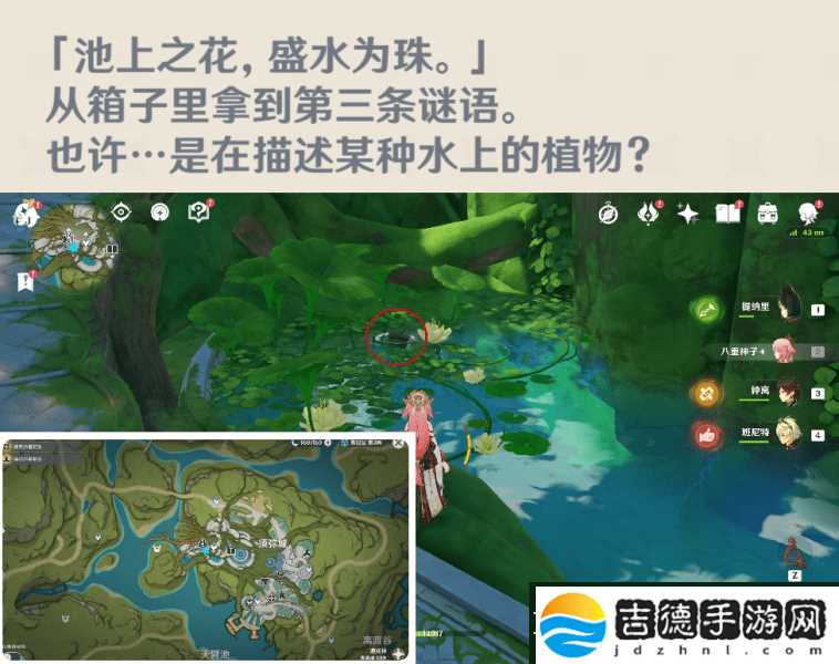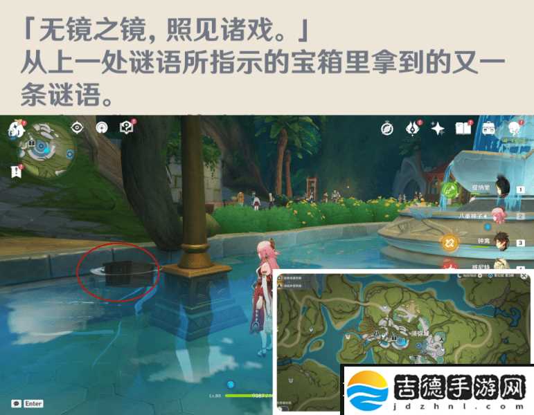 谜题4:从传送锚点下到下层水池(寂静园)获得摩拉盒子以及第五条谜语