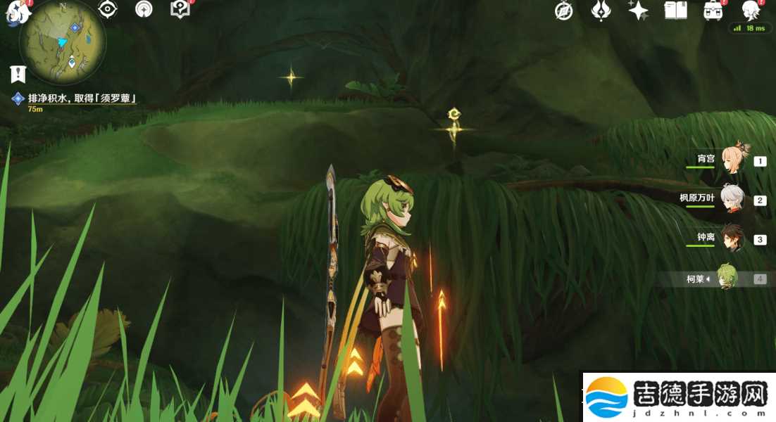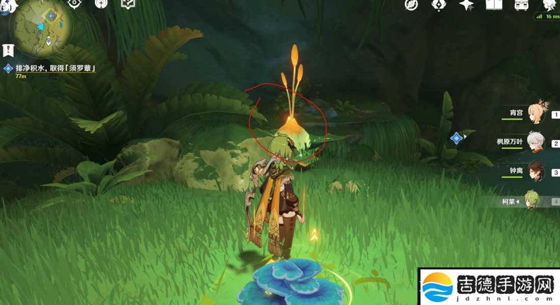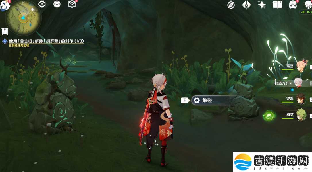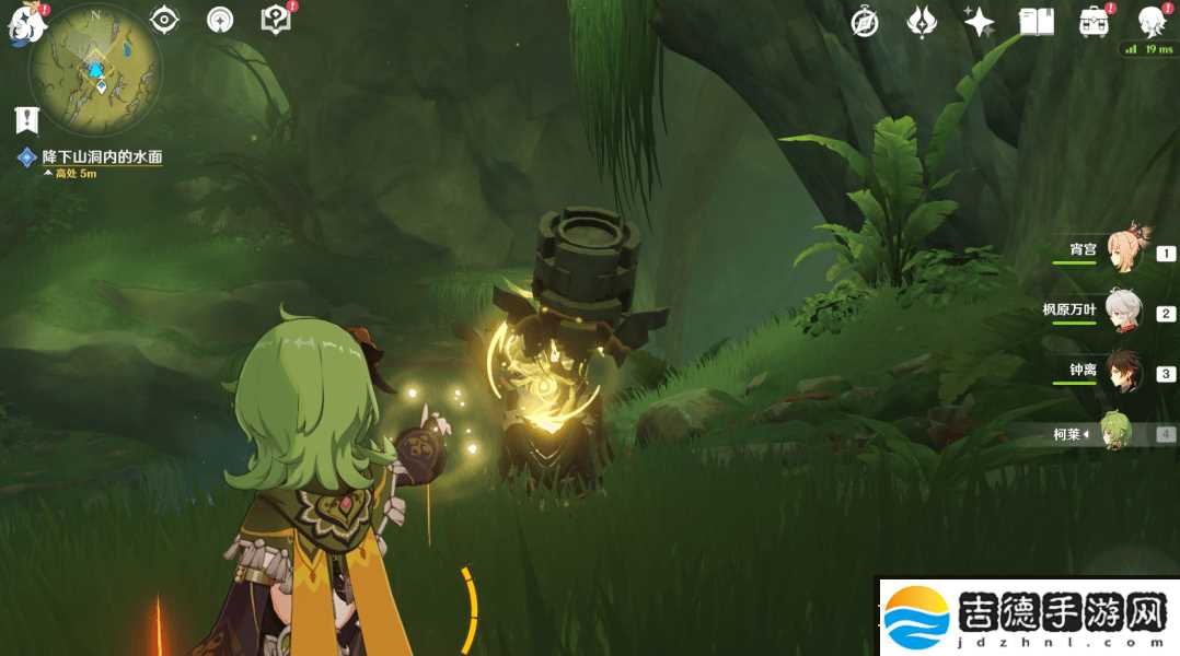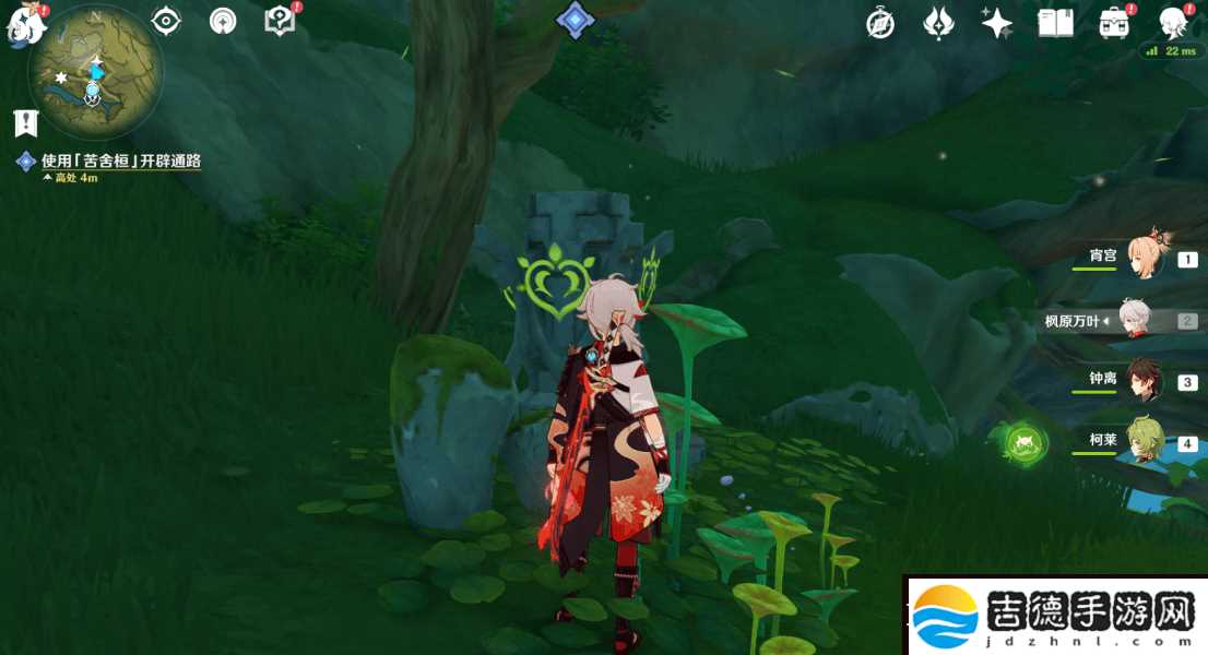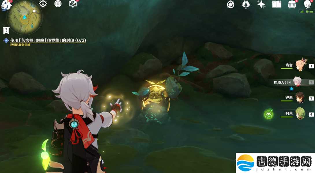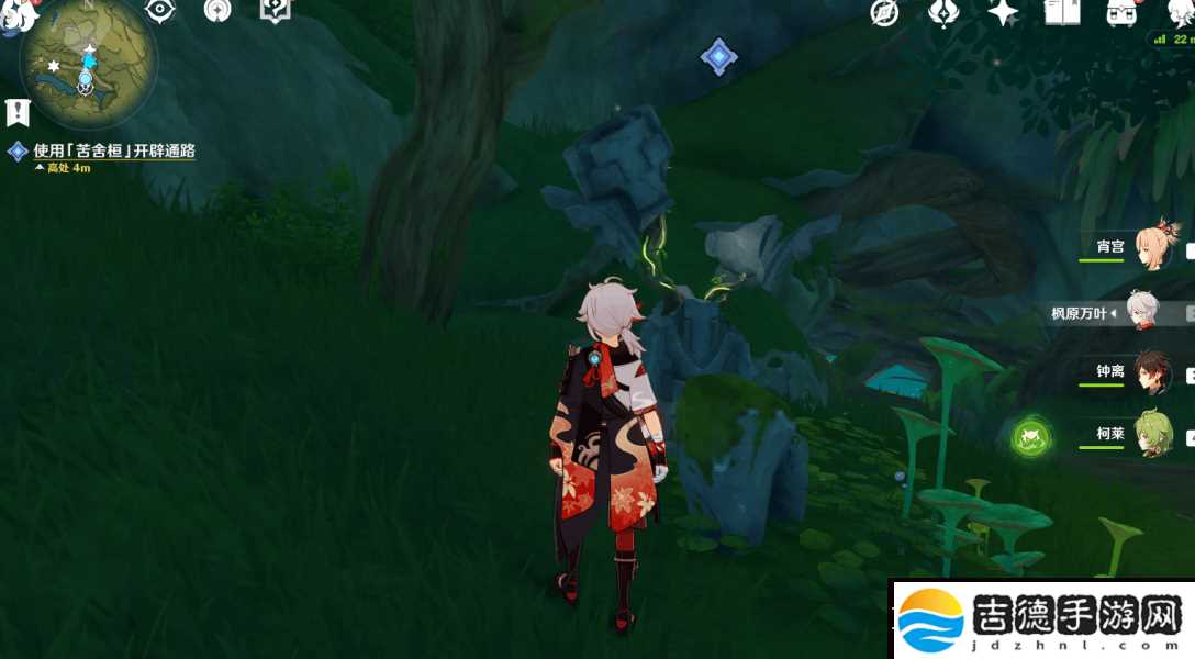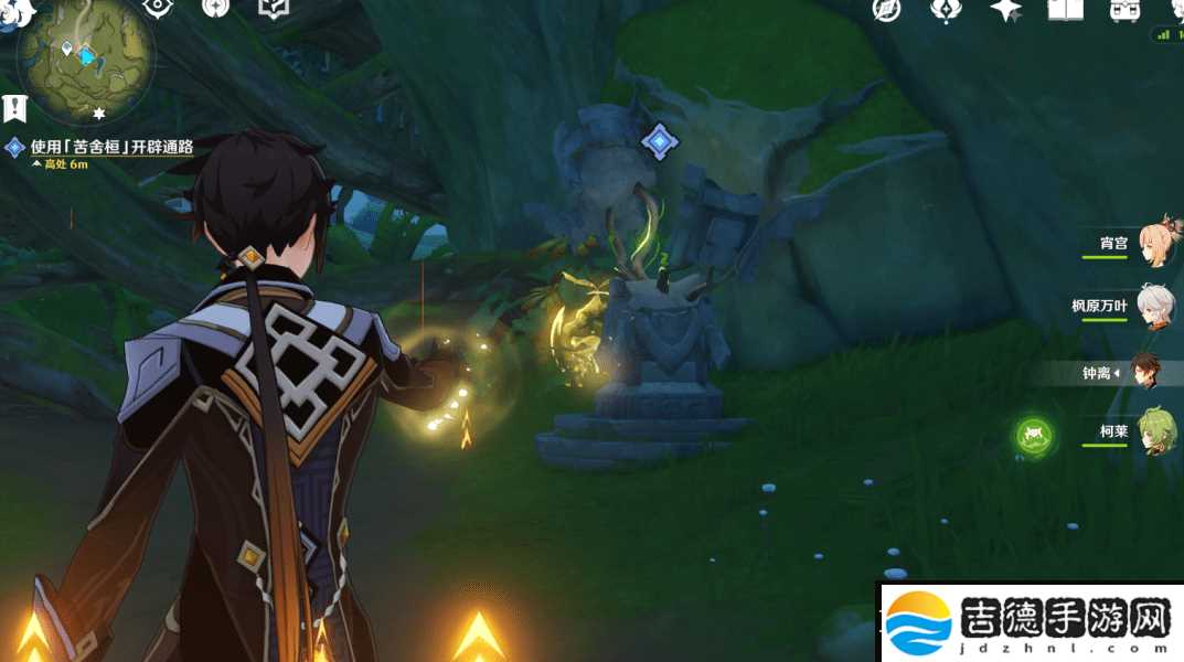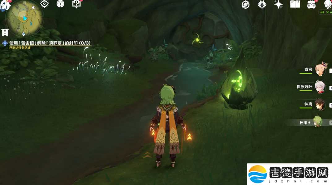 一路跟随指引,用【苦舍桓】,修复机关,并草元素激活开启道路。