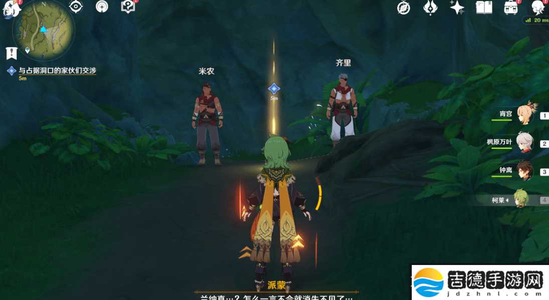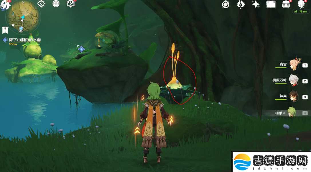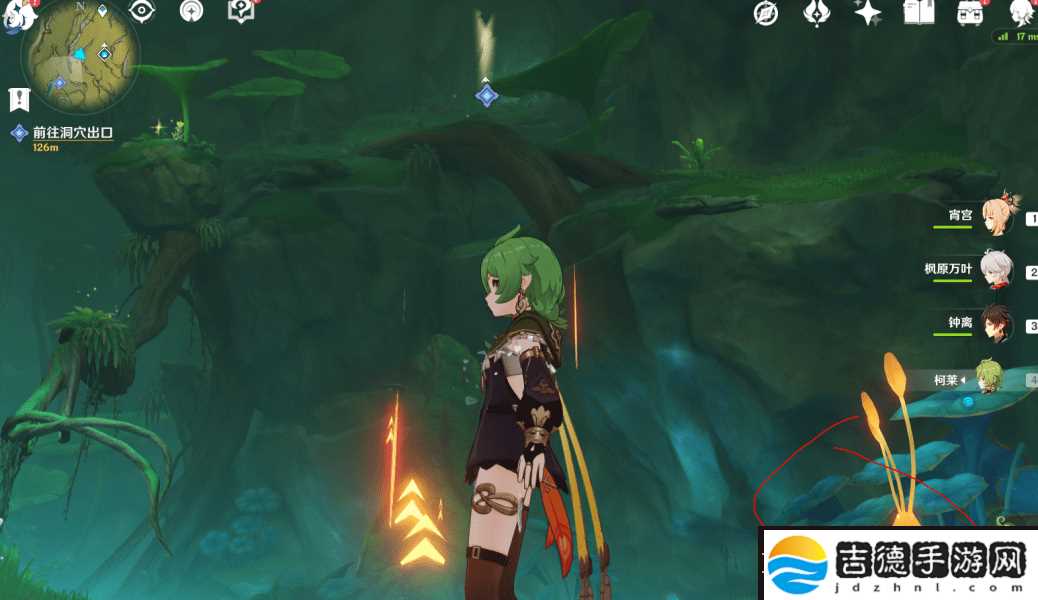 对话结束,草元素激活下图机关,生成钩锁,方便跟随指引跑图