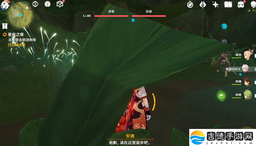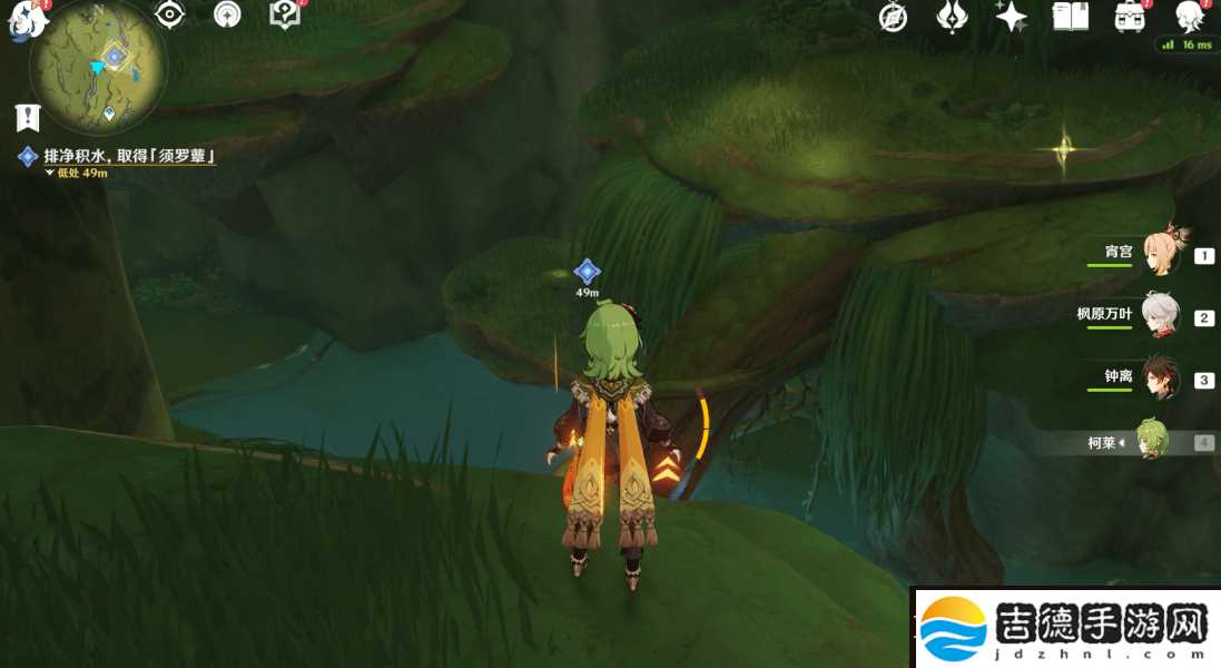 之后草元素激活圈内机关,跟随指引钩锁上来,然后飞到任务点