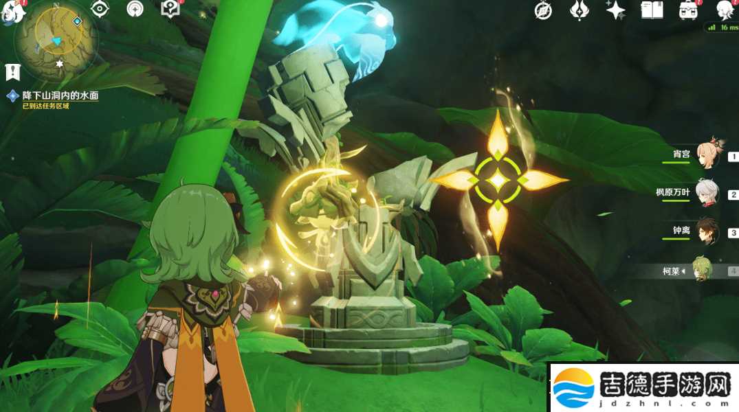 草元素攻击图中机关,出现钩锁,后续同样,一直到任务指引点处修复方碑
