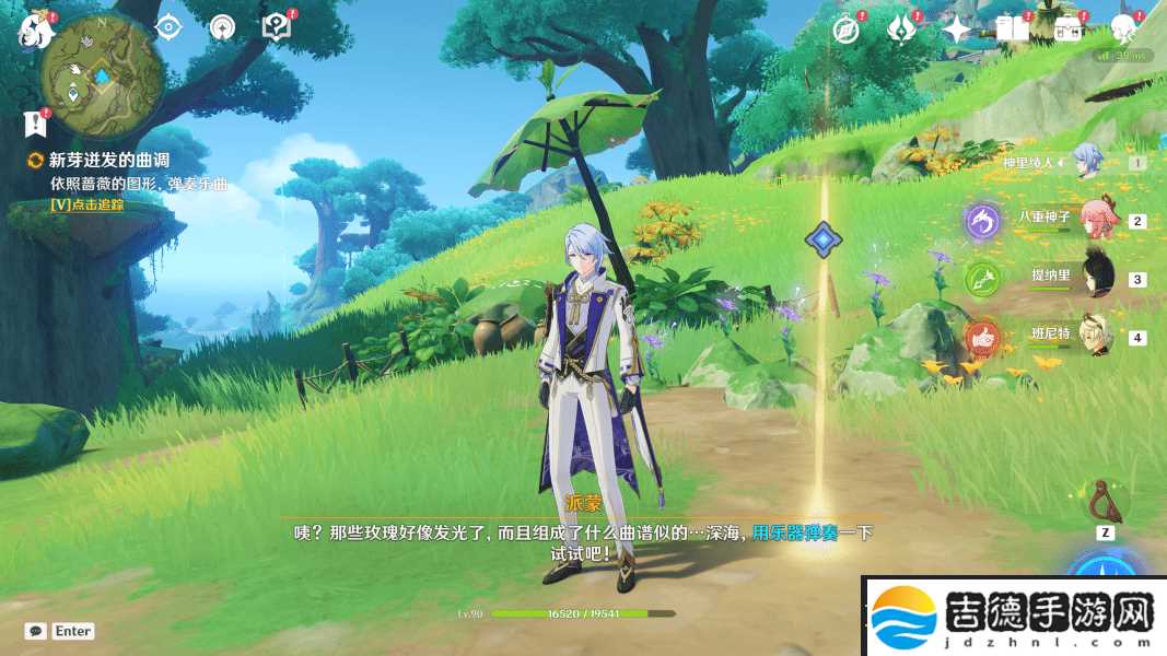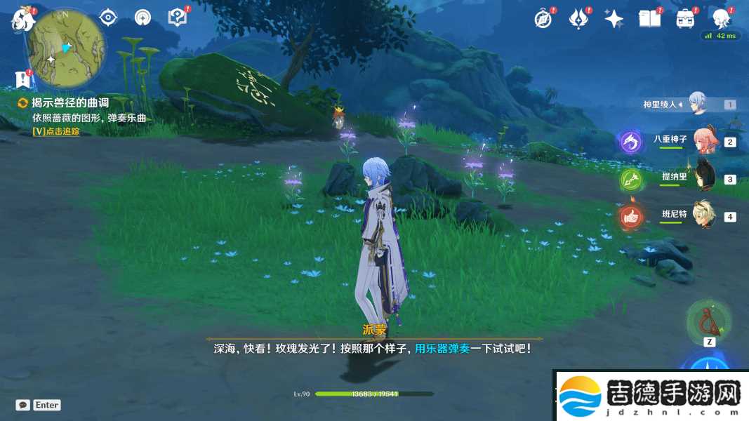 3.在这个位置观察蔷薇,观察成功后即可触发弹奏