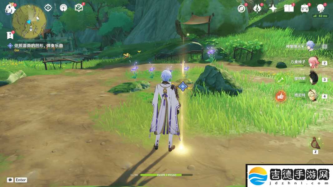 12.进入打开了的大门,走到头,在尽头的花处佩戴道具-老旧的诗琴,弹奏乐章(ZBNCZ)