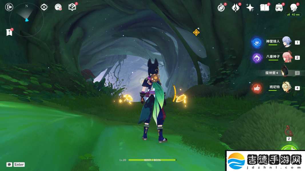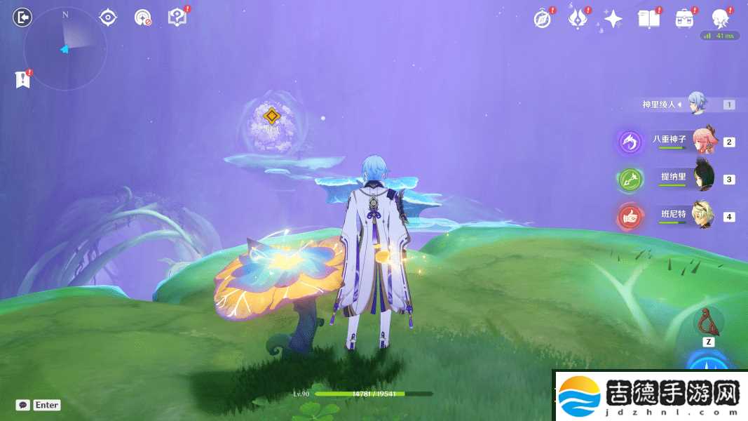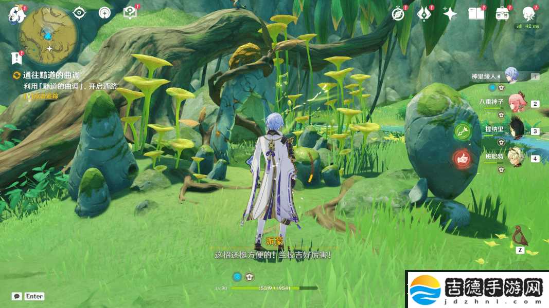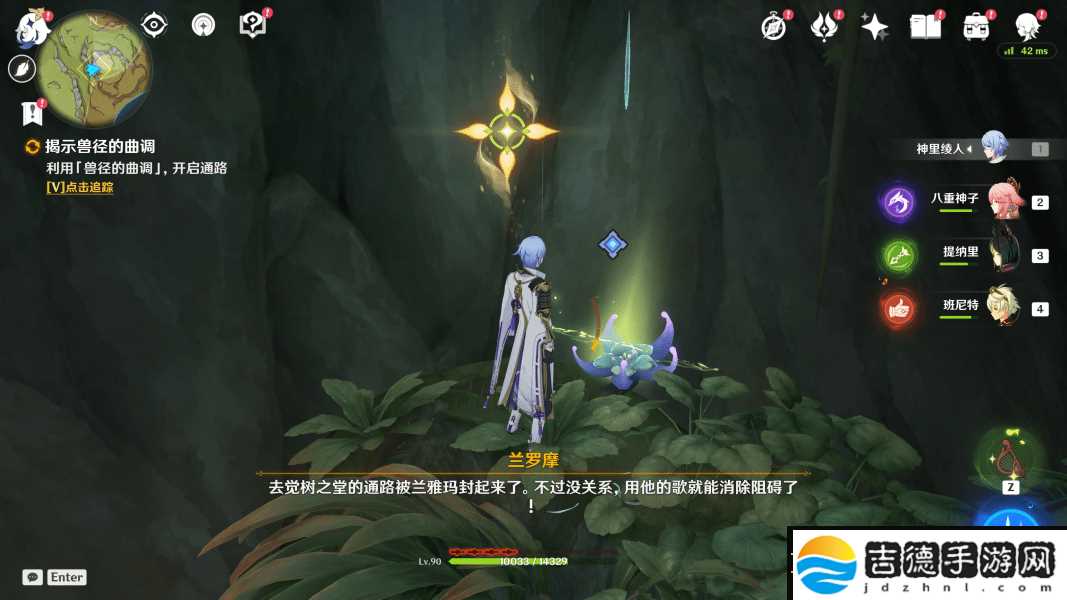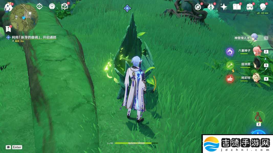 14.往北走击败蕈兽获得宝箱,再看向西南方向,用草元素激活众叶觉蕊,借助四叶印飞上去