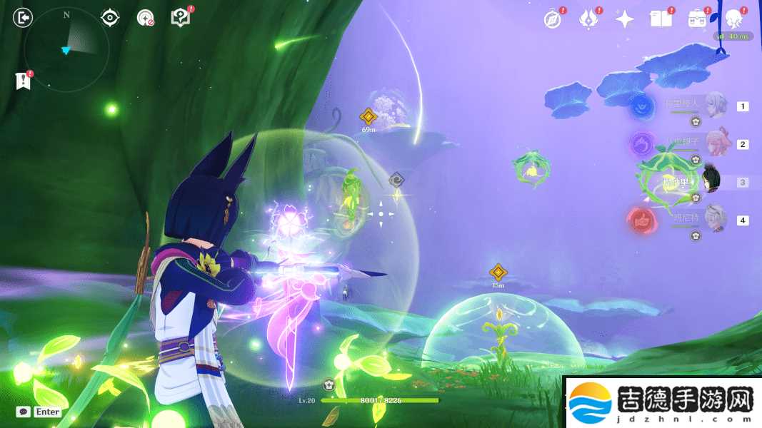 13.使用草种子协助攻击,用弓箭角色重击瞄准草灯笼,即可获得第二个原始松脂