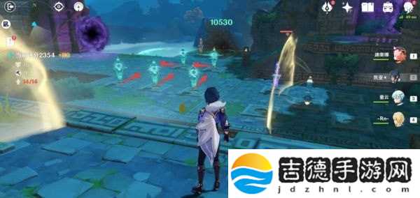 考虑到破水盾的需要,我们可以使用冰系/火系角色的元素战技或火机关来破坏水深渊法师的护盾。