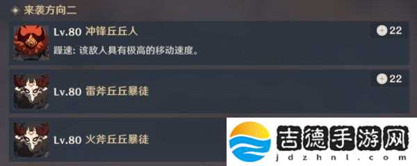 在击杀深渊法师后,下半的主要威胁转为丘丘暴徒,此类敌人有较强的抗打断能力和较高的生命值,光靠风机关无法在此类敌人穿越防线前将其击杀。