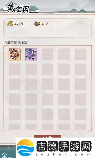 3、进入藏宝阁之后,在书卷中就可以看到目前已经获取的心法;