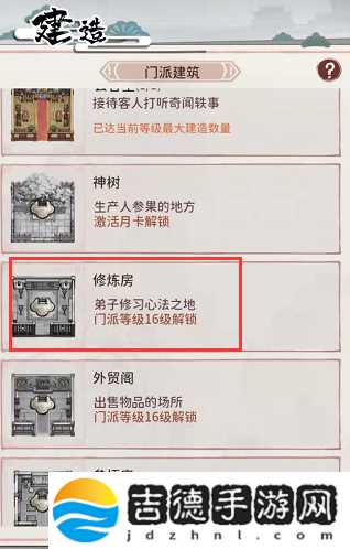 1、首先玩家需要建造一个【修炼房】,玩家需要达到16级才可以建造;