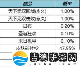 从概率我们可以看出来抽到两个皮肤的概率都是百分零点一,这个机会可以说很小,而抽到皮肤碎片的概率是最大的,高达百分48,而回城特效也才百分之一,这个不亏是腾讯,抽奖概率一直如此之低。