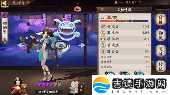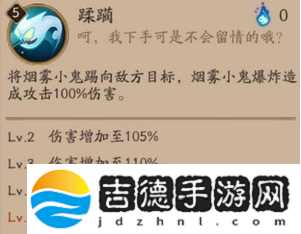 烟烟罗的技能描述和她的面板,基本上定位就是一个控制系的式神,或者作为副输出使用
