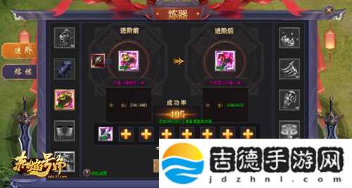 在《赤焰号角》这片精彩热血的奇幻大陆,当玩家角色达到指定等级,即可觉醒炼器系统。修炼者可以通过主页面的炼器标签进入查阅详情,在该项玩法**包含装备进阶、装备熔炼两大模块。其中,装备进阶可以令31阶以上的战装通过配方进阶。根据装备部位和装备品阶等阶的不同,进阶要求也有所不同。如:31-35阶的战装升级成功率为100%,36阶以上的装备升级成功率则小于100%,但修炼者可通过添加36阶及以上的战装,来提高装备进阶的成功率。