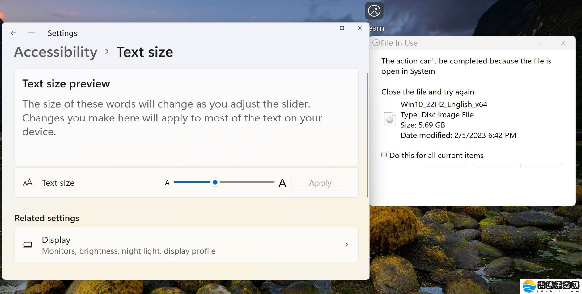 此次更新解决了这一问题。该媒体再次将文本大小设置为 150%,并通过强制删除挂载的 ISO 文件重新创建错误窗口,这次,整个对话框的文本大小均符合新设置。